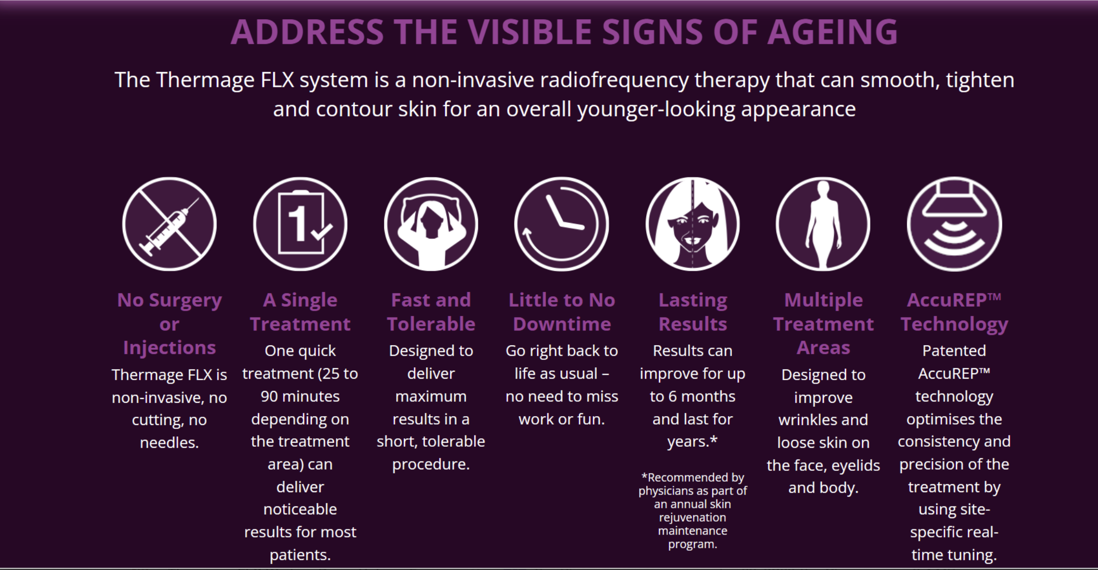 Thermage FLX is a non-invasive skin tightening treatment that will boost collagen production from the deepest layers for natural looking results.